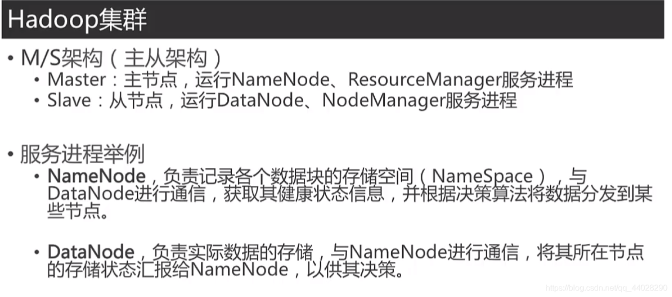 首先说一下hadoop集群的基本结构。